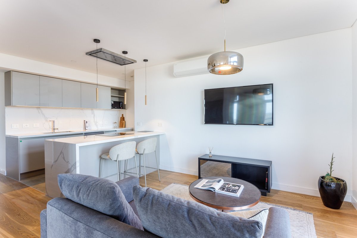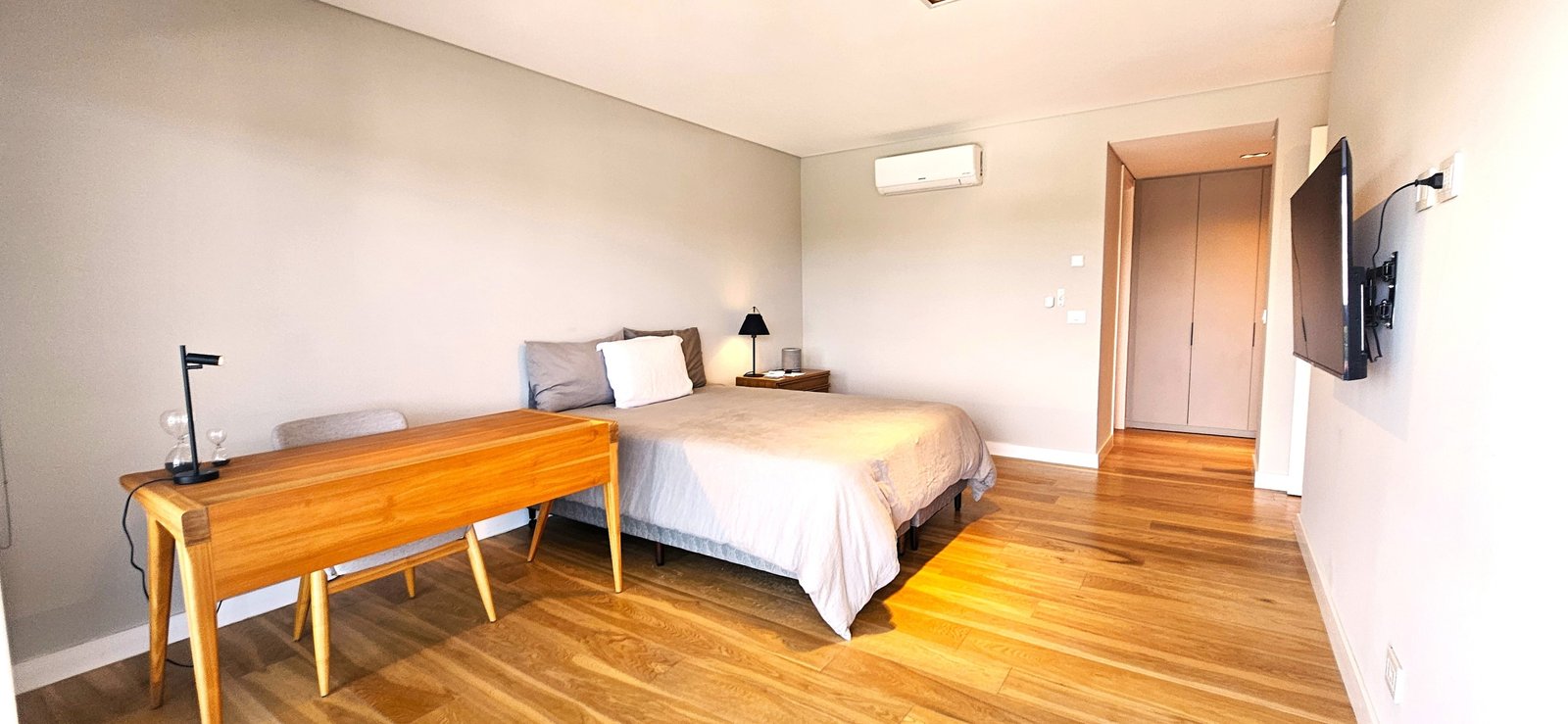 Amenities y servicios del edificio: lobby exclusivo, Wi-Fi en áreas comunes, piscina interior climatizada, sauna, solárium, sala fitness con equipamiento de última generación, vestuarios, sala de masajes, salón de belleza y huerta orgánica.