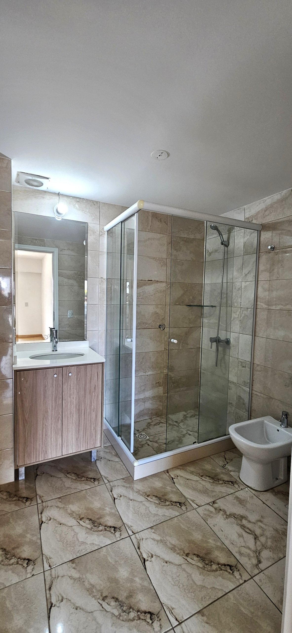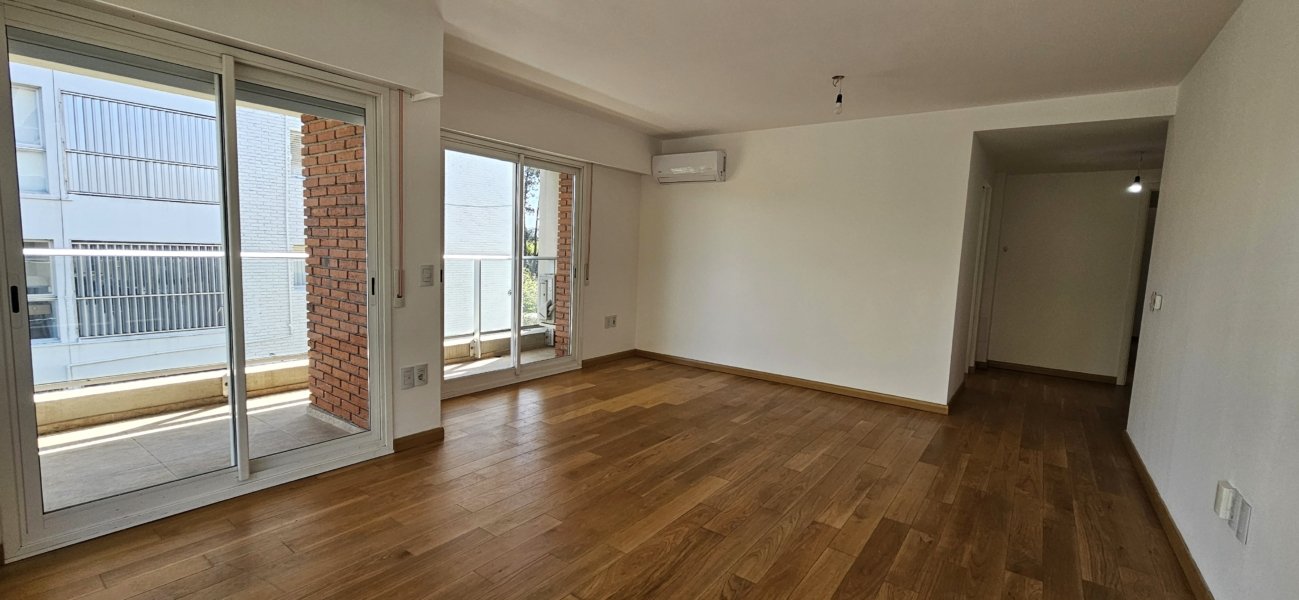 El apartamento dispone de dos dormitorios, uno de ellos en suite con baño de diseño italiano y terraza privada. También se incluyen dos baños completos y dos cocheras independientes ubicadas en el subsuelo.