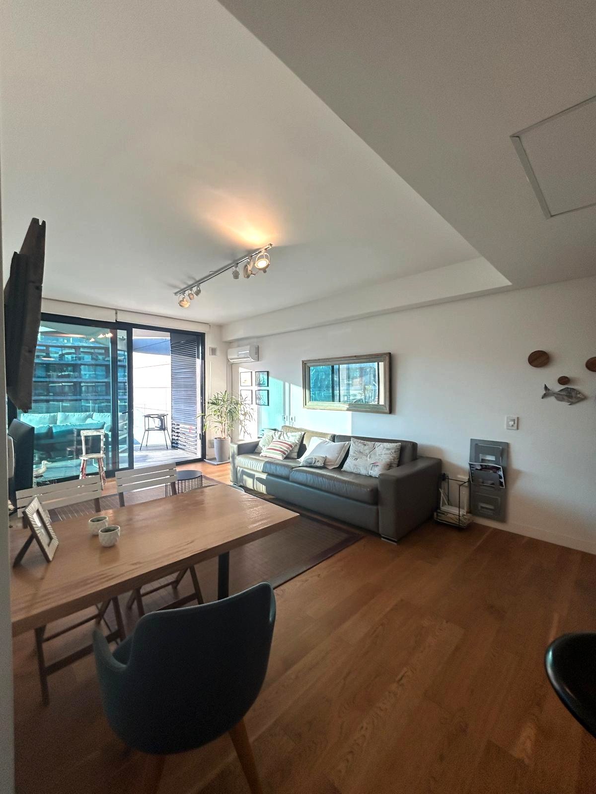Amplia terraza con la vista, al Puertito del Buceo, ambientes con salida a terraza de 17 metros, equipada con mobiliario.