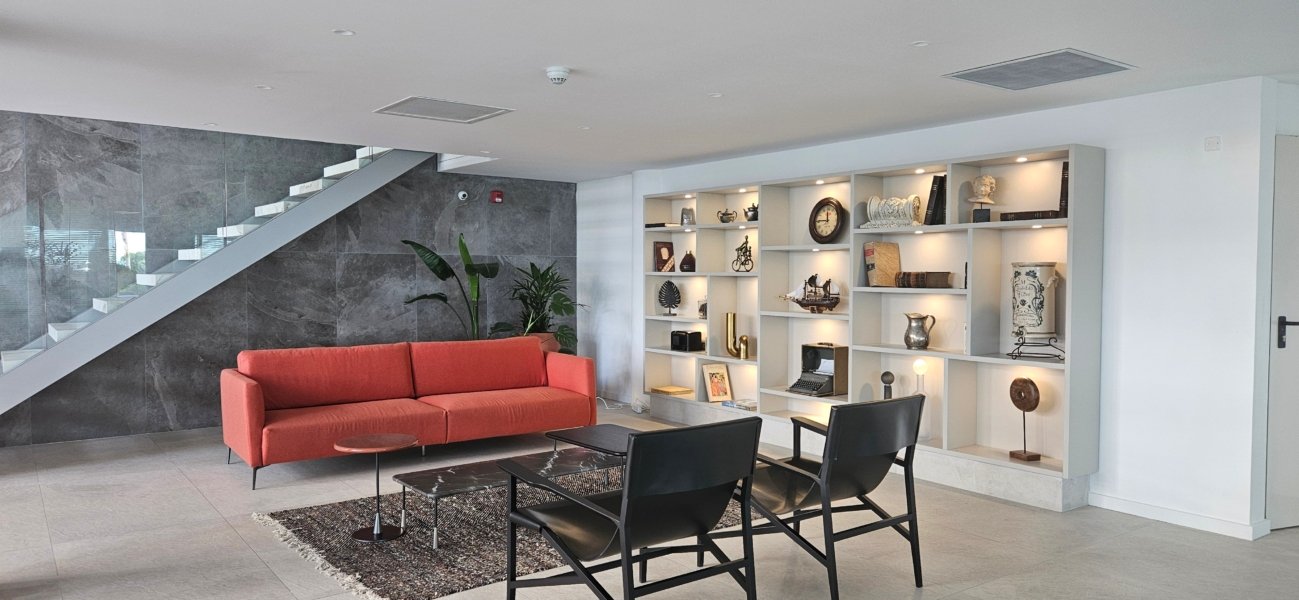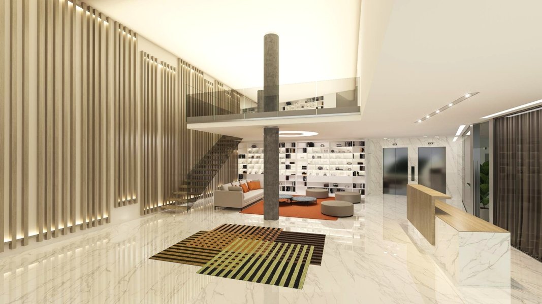 Su acceso a través del lobby de doble altura permite disfrutar del edificio apenas uno ingresa. El edificio tiene dos subsuelos de cocheras por rampa y ascensor de garaje.