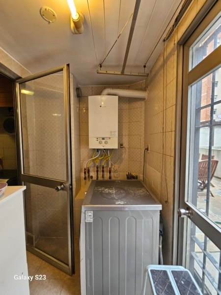 Cocina con iluminación placares en madera en muy buen estado, doble mesada y terraza lavadero con caldereta a gas en el lugar.